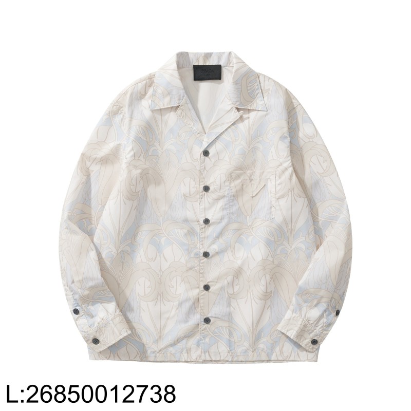• [흰] 프라다 타임캡슐 프린티드 화훼 코튼 긴팔 셔츠 베이지
