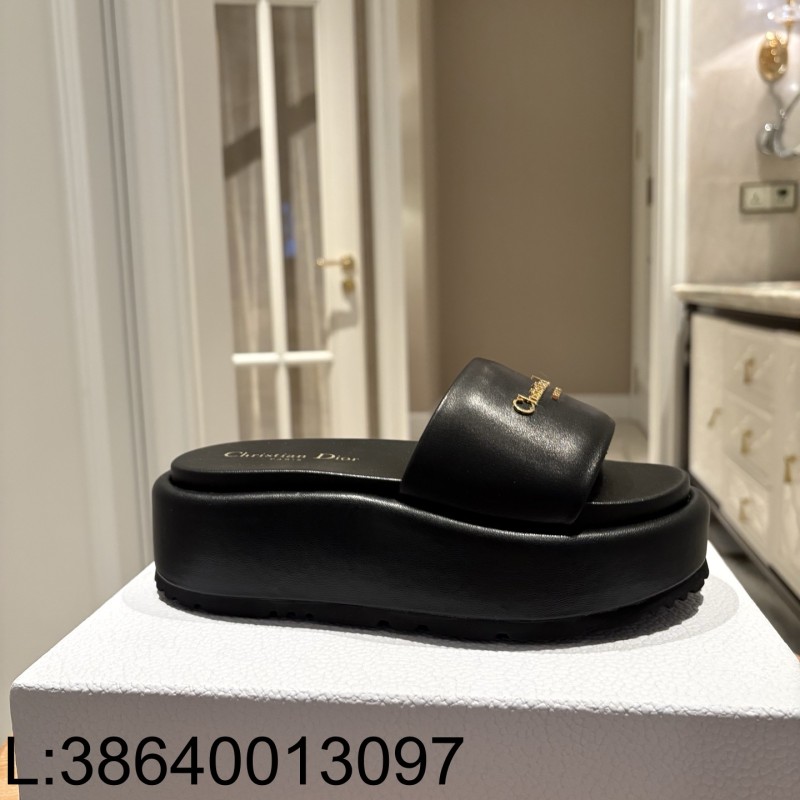• [QR5009] 디올 D-Lane 통굽 슬리퍼 블랙 4cm