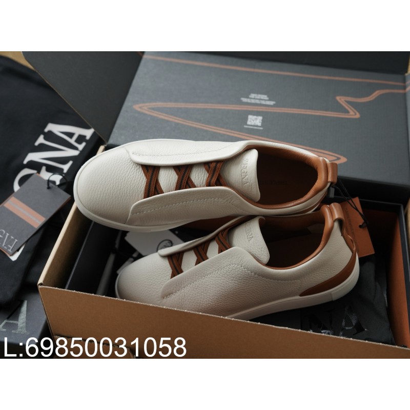• [AP공장] 제냐 트리플 스티치 TM 스니커즈 화이트 브라운 남성용
