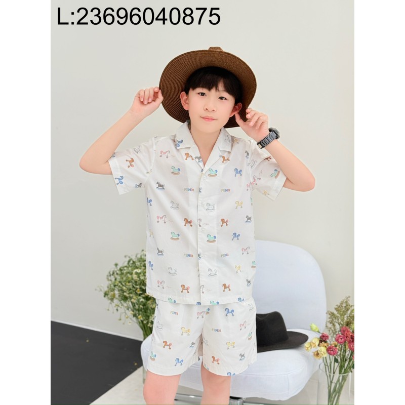 • [AC아동복] 펜디 말 프린트 올 오버 반팔 셔츠 반바지 세트 화이트