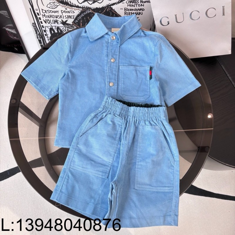 • [AC아동복] 구찌 코듀로이 순색 반팔 셔츠 반바지 세트 스카이 블루