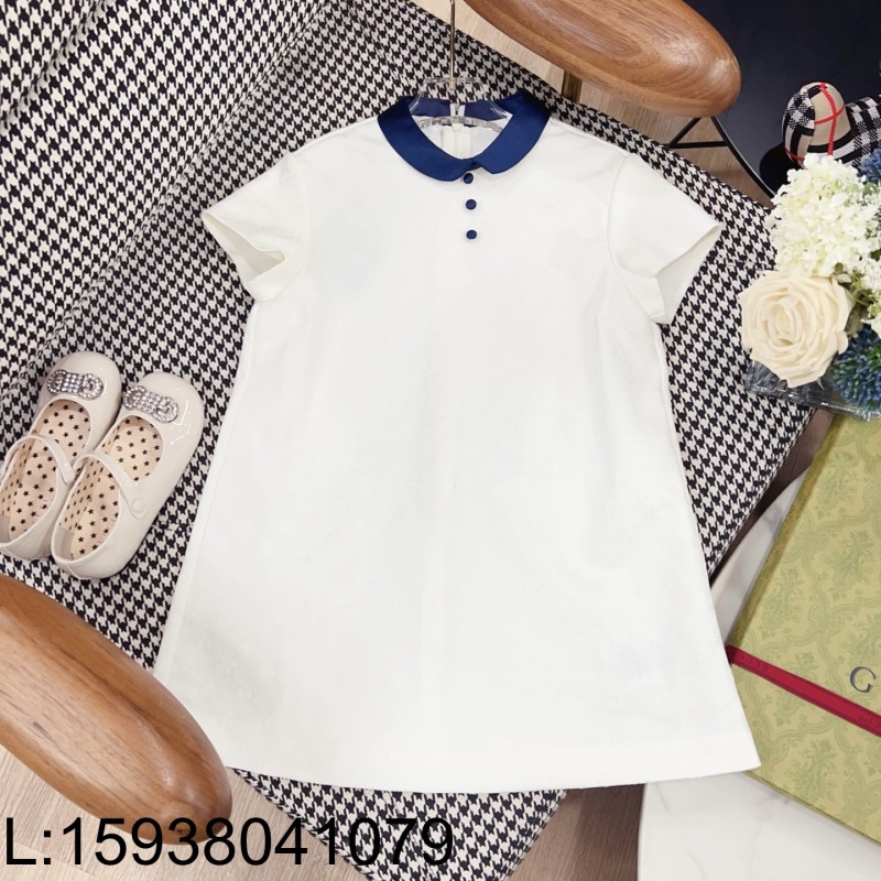 • [AC아동복] 구찌 GG로고 자카드 다크 블루 카라 원피스 화이트