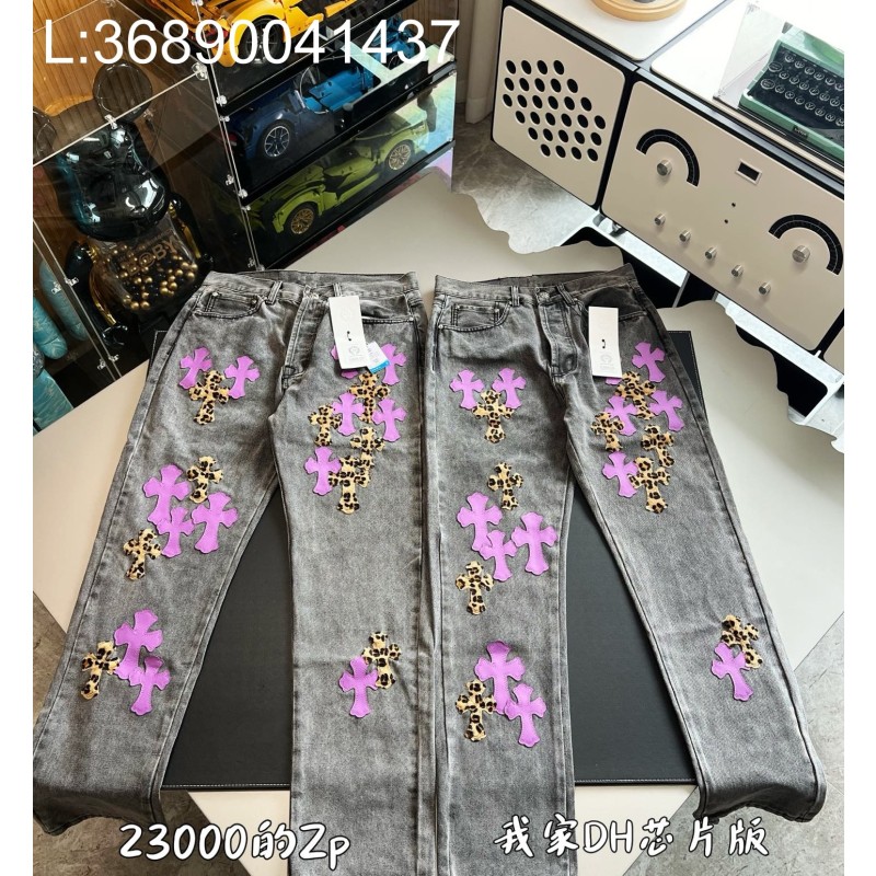 • V공장 크롬하츠 퍼플 표문 십자가 청바지 그레이