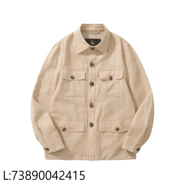 [흰] 로로피아나 멀티포켓 카고 셔츠 자켓 베이지 79%아마 21%실크
