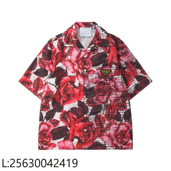 [흰] 프라다 타임캡슐 프린티드 코튼 반팔 셔츠 핑크