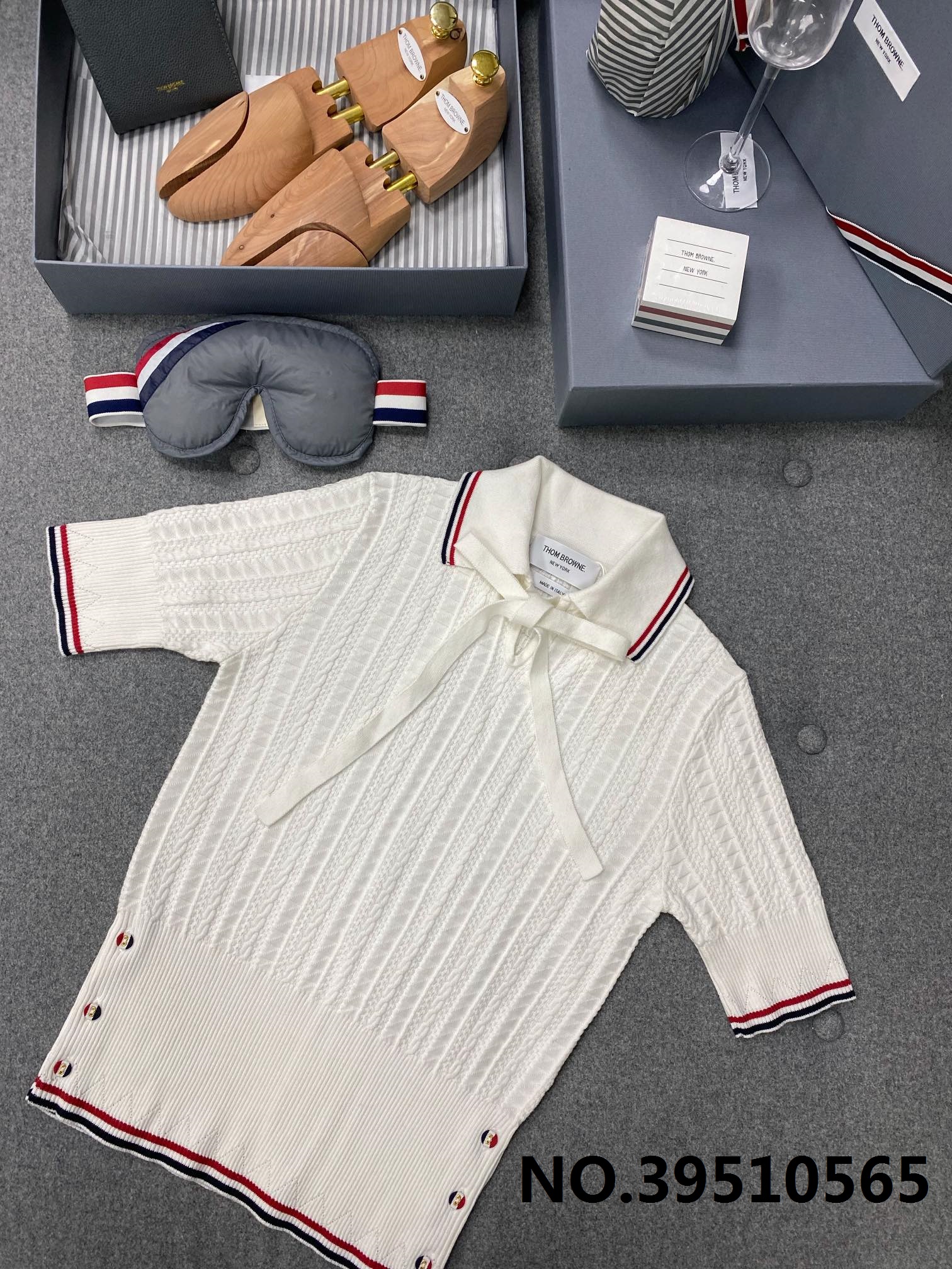 TJ공장 톰브라운 여성용 나비매듭 니트 반팔티 화이트 Thombrowne