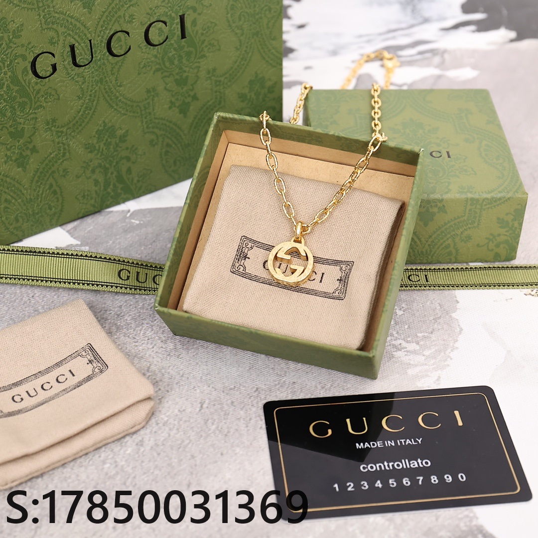 AGG 구찌 GG 인터로킹 펜던트 목걸이 골드 Gucci