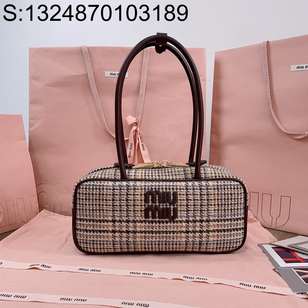 [JHL] 미우미우 캔버스 앤 레더 보 백 하운드투스 초콜릿 28*12*9cm 5BB147
