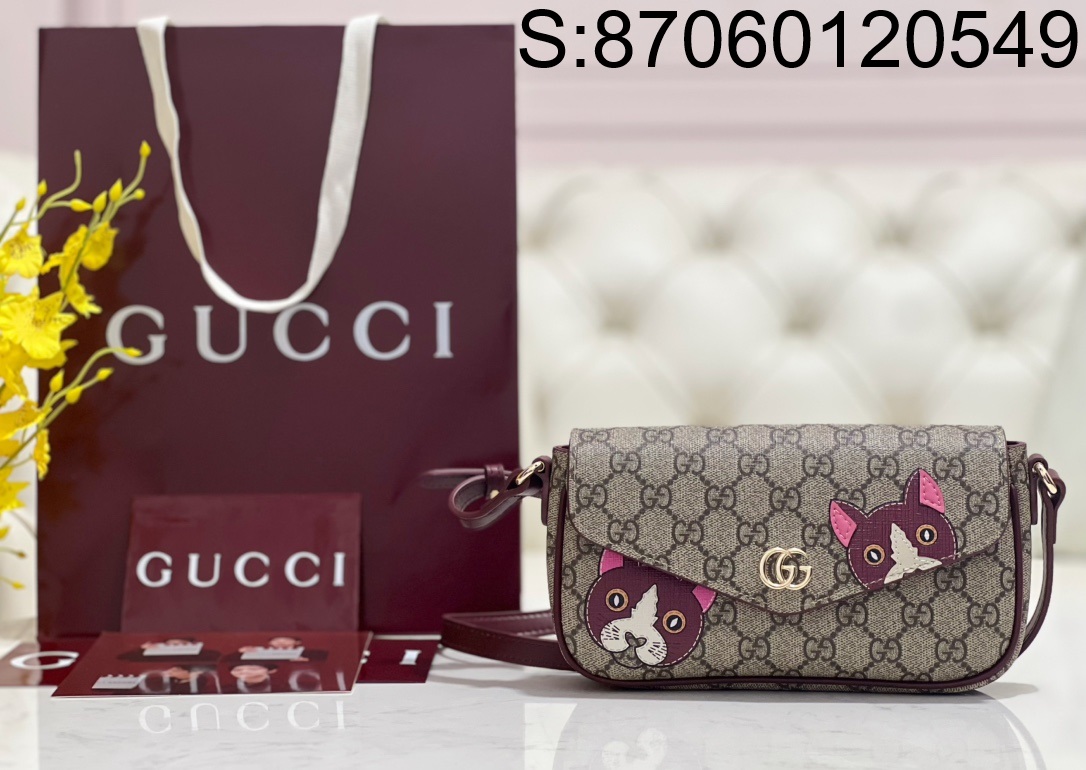 [JHL] 구찌 캣 티테일 패브릭 미니백 818764 22*13*4cm 와인 Gucci