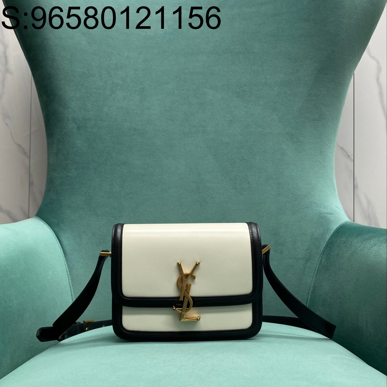 Pomegrante 생로랑 가죽 스몰 사첼 백 흑백 634306 18.5*14*4cm