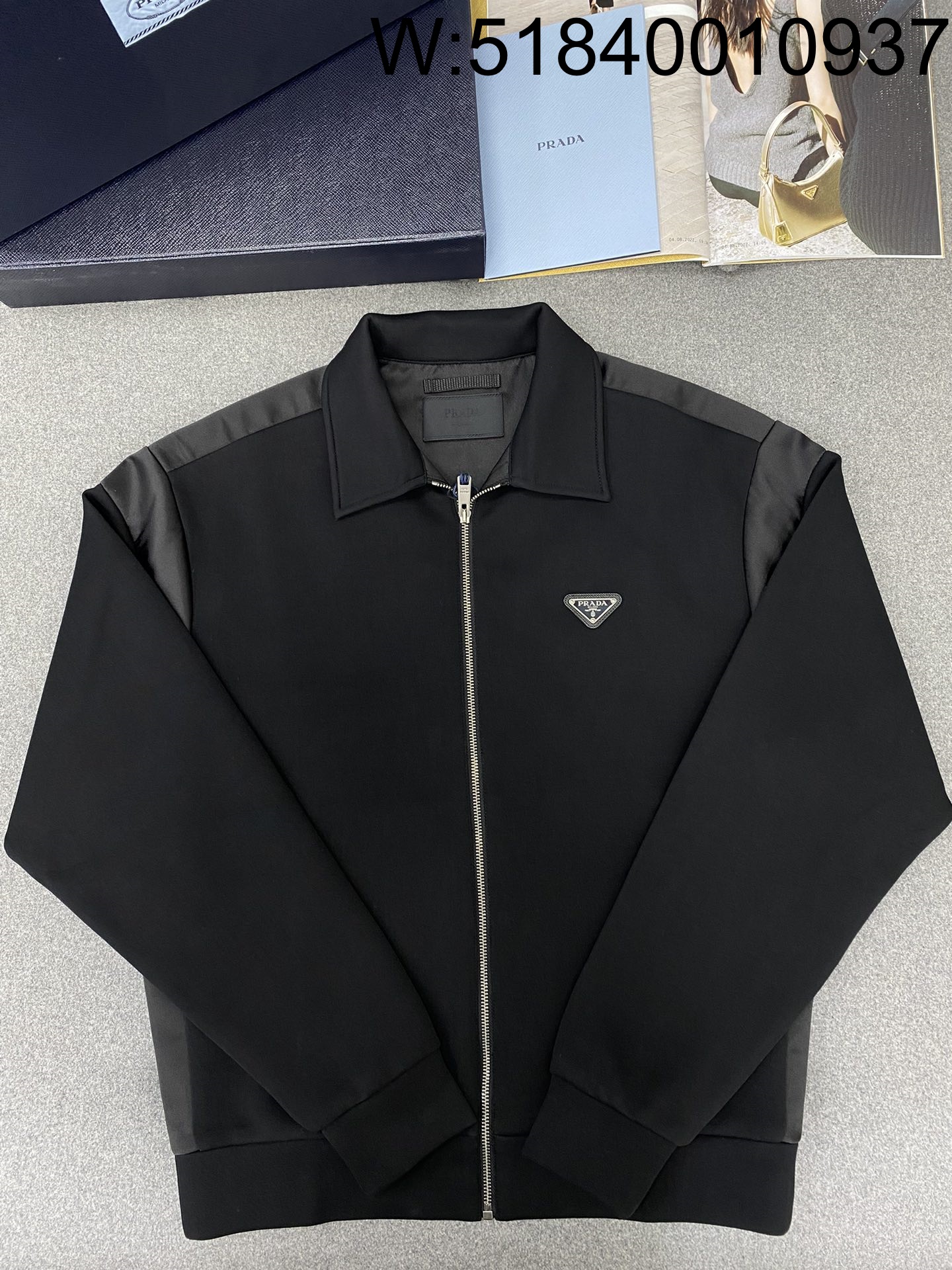 TJ공장 프라다 삼각 로고 이음 지퍼 자켓 블랙 Prada