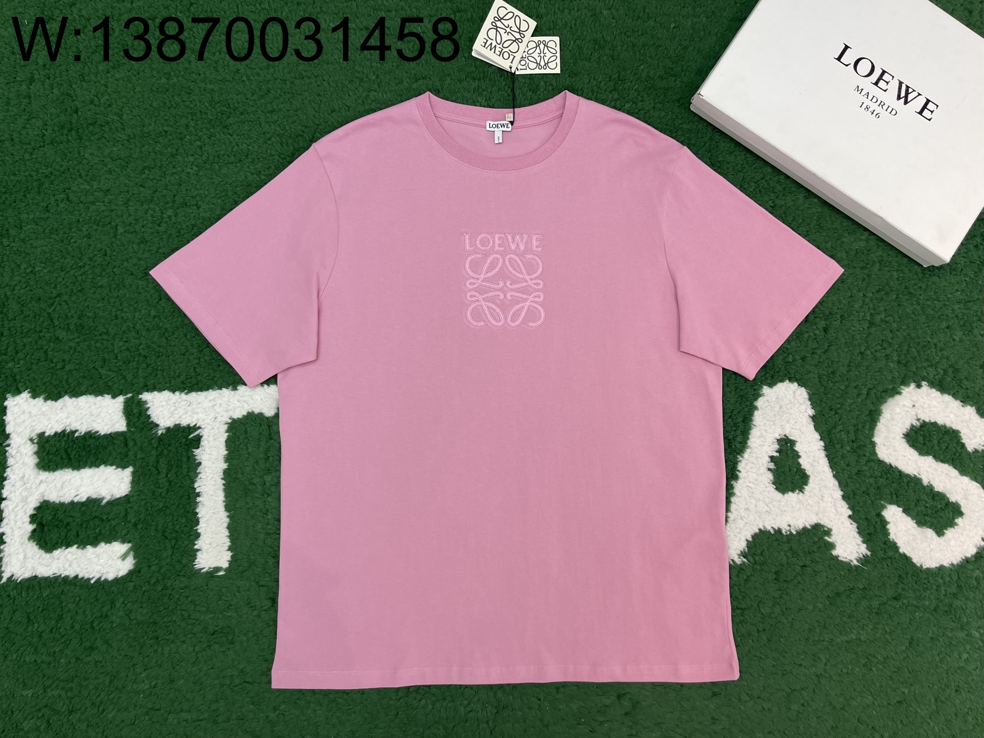 [잔디집1] 로에베 모노그램 로고 자수 순색 반팔티 핑크