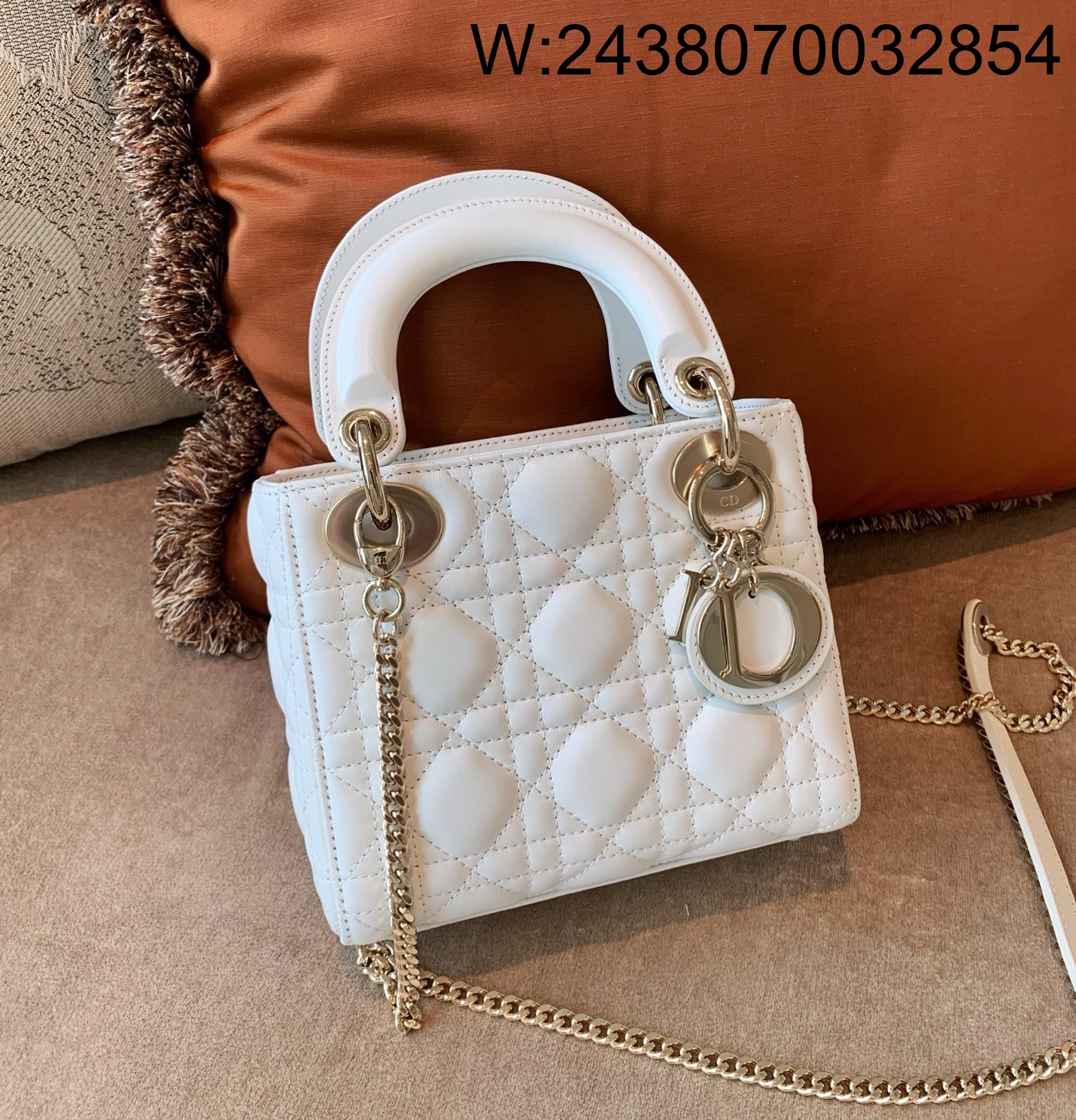 [엔젤] 디올 미니 레이디백 까나쥬 17*15*7cm 화이트 금장