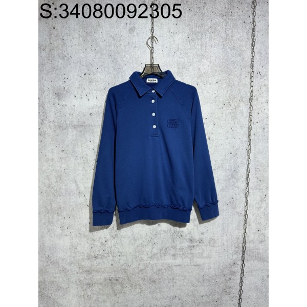 • [사슬공장] 미우미우 SS25 반지퍼 칼라 넥 배색 맨투맨 네이비