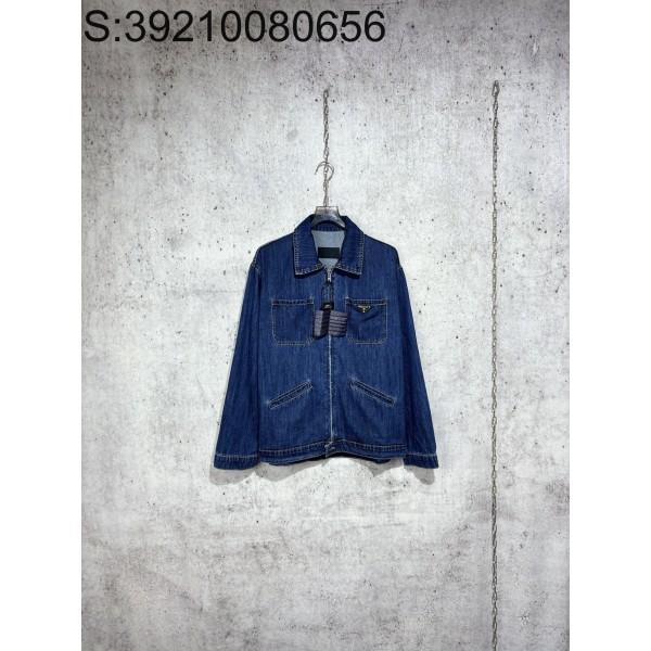 • [사슬공장] 미우미우 모노그램 자수 스트라이프 데님 자켓 라이트 블루